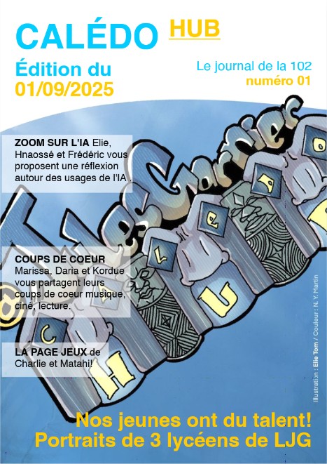 Inscrits dans un parcours d’éducation aux médias et à l’information - la "Classe Médias", les élèves de la classe 102 vous proposent leur 1er numéro du magazine CalédoHub. Au cours de ce parcours, les élèves ont pu rencontrer des professionnels de NC la 1ère, M. Gonzague de la Bourdonnaye, journaliste et M. Nicolas Yann MARTIN, dessinateur qui réalise les dessins pour le JT du dimanche soir. Dessin de presse, fake news, déontologie du journaliste, l’information à l’heure de l’IA...., les échanges ont été très riches. La classe est invitée pour une visite de NC la 1ère très bientôt.